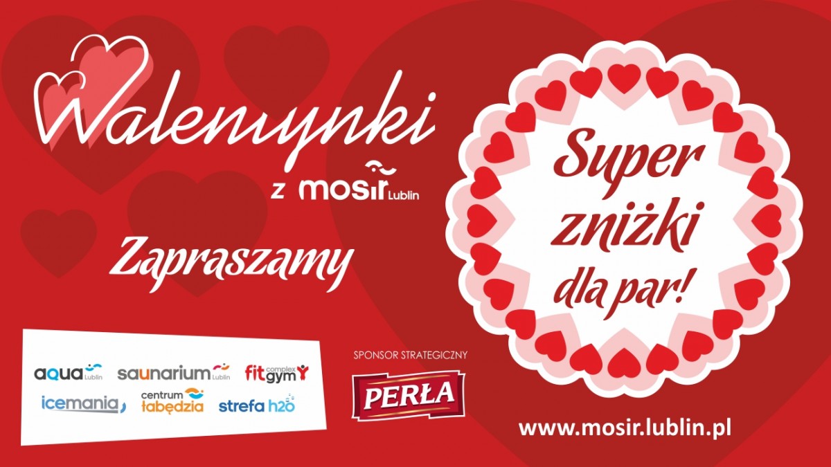 ![]() | Aqua Lublin Przez cały dzień 14 lutego Happy Hours dla zakochanych: 75-minutowy bilet wstępu na Kompleks Basenów za jedyne 10 zł (ulgowy) i 13 zł (normalny) przy zakupie biletów dla pary. |