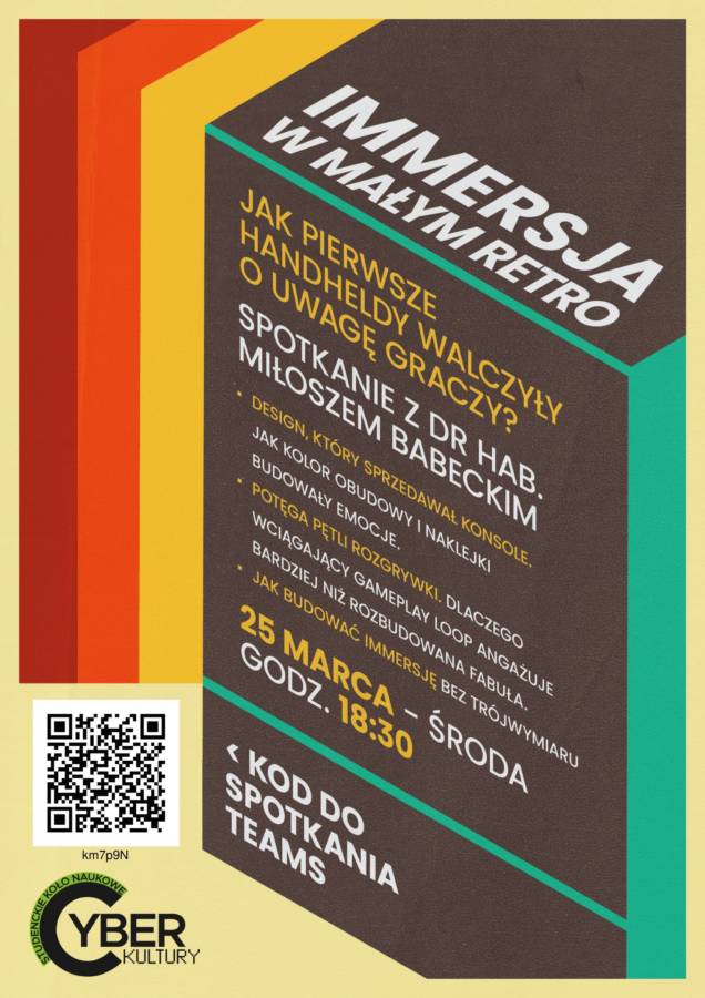 Studenckie Koło Naukowe Cyberkultury UMCS zaprasza na spotkanie z Miłoszem Babeckim, profesorem nauk społecznych, groznawcą oraz literaturoznawcą. Na wykładzie autor opowie, jak konsole dawnej ery przyciągały wyłącznie swoim designem i dekoracjami.