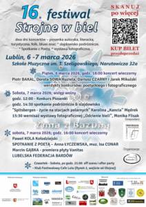 „Strojne w biel” 2026 odbędzie się 6 i 7 marca w Szkole Muzycznej I i II st. im. Tadeusza Szeligowskiego w Lublinie. W czwartek (5 marca), przed festiwalem, a także w piątek oraz sobotę po zakończeniu koncertów organizatorzy zapraszają również na off scenę i jam session w Cafe Lulu.