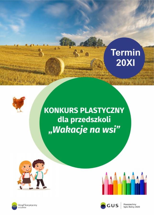 Jest on kierowany do podopiecznych przedszkoli. Tematem konkursu jest przygotowanie prac plastycznych, które prezentują wspomnienia z wakacji spędzonych na wsi lub ich wyobrażenie. W swoich pracach najmłodsi powinni nawiązać do zwierząt gospodarskich, maszyn rolniczych i innych zagadnień objętych Powszechnym Spisem Rolnym.