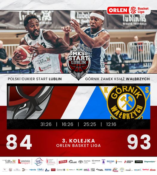W meczu 3 kolejki Orlen Basket Ligi, Polski Cukier Start Lublin na swojej hali podejmował ekipę Górnika Zamek Książ Wałbrzych. Tym razem lepszą drużyną okazała się grupa z Wałbrzycha. Przyjezdni wygrali 84-93.