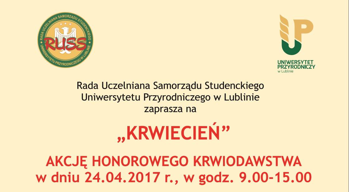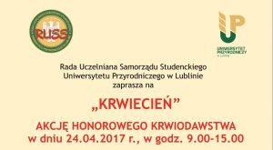 W tym roku, już po raz trzeci, na Uniwersytecie Przyrodniczym odbędzie się akcja honorowego krwiodawstwa pod hasłem „Krwiecień”.