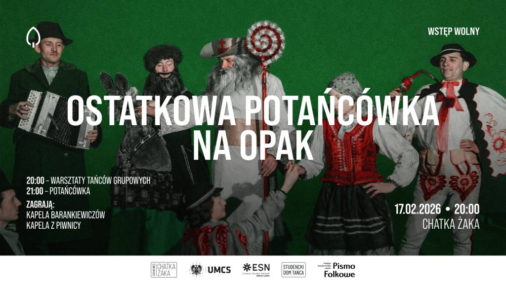 Mowa o „Ostatkowej Potańcówce na Opak”, zwanej też kusakami lub zapustami. Wydarzenie będzie otwarte dla wszystkich, bez względu na wcześniejsze doświadczenie. O oprawę muzyczną spotkania zadbają Kapela Barankiewiczów oraz Kapela z Piwnicy.