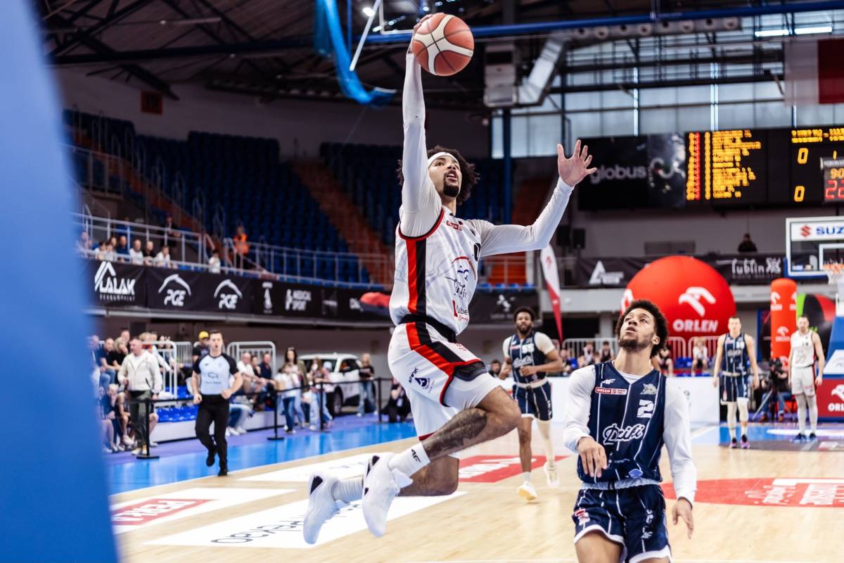 ważne pod kątem nie tylko pozycji w tabeli ale i fazy play off. Drużyna gości przed spotkaniem zajmowała ostatnie miejsce gwarantujące grę w fazie play-in, więc wydawało się, że to czerwono-czarni będą faworytem w tym spotkaniu. Pierwsza piłka trafiła do gości jednak jako pierwsi punktowali gospodarze. Tevin Brown przechwycił piłkę na środku parkietu i pognał po 2 pkt. Odpowiedź gości była błyskawiczna jednak ich przewaga na parkiecie trwała do 4 minuty kiedy to Start zdominował grę. Zdobyli dwupunktowe prowadzenie i wraz z biegiem kwarty sukcesywnie powiększali prowadzenie. Po 8 min ich prowadzenie wynosiło 7 punktów,19:12. Przed samą końcówką tej części spotkania goście próbowali oddać rzut za 3, który po analizie przez sędziów został uznany za nieprzepisowy. Przed samym końcem mieliśmy, więc dodatkowe emocje. Na szczęście dla gospodarzy i Ousmane Drame, który sprowokował tą sytuację zawodnik gości trafił do kosza zaledwie raz. Po jego próbach na tablicy widniał wynik 21:18 dla gospodarzy. O tym co można było zrobić lepiej na początku spotkania wypowiedział się trener startu Wojciech Kamiński: