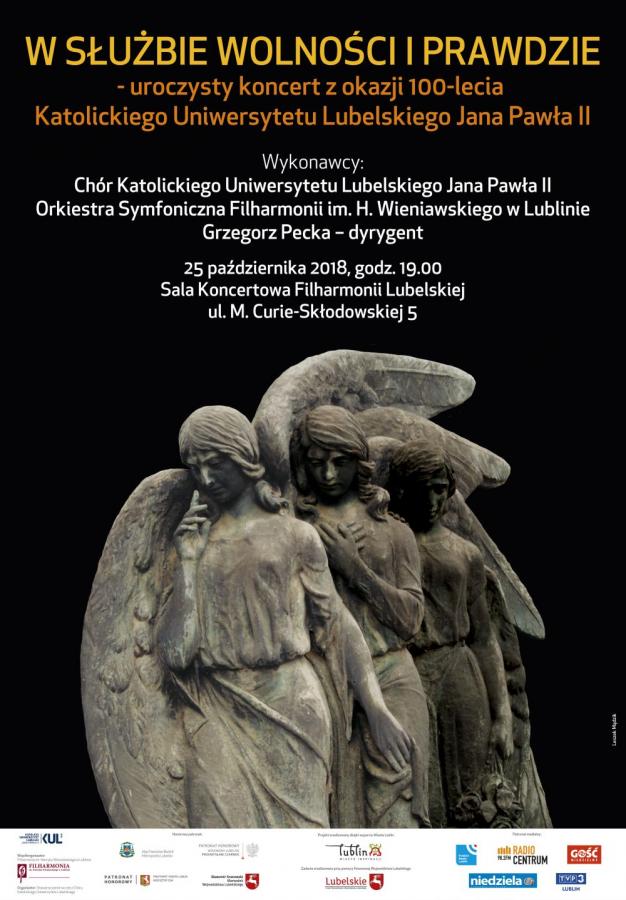 Z okazji stulecia powstania uczelni Chór Katolickiego Uniwersytetu Lubelskiego i Orkiestra Symfoniczna im. Henryka Wieniawskiego przygotowały koncert składający się trzech części. Podczas wydarzenia wystąpią polscy i zagraniczni artyści. Repertuar obejmuje utwory wokalne oraz wokalno-instrumentalne.