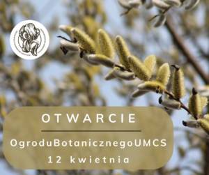 Bramy Ogrodu po zimowej przerwie otworzą się już 12 kwietnia o godzinie 10:00. Uczestnicy będą mieli okazję wziąć udział w inauguracyjnym spacerze: „Wiosenna galeria natury”, poznając rośliny które tej wiosny zakwitły jako pierwsze. Oprowadzenie potrwa przez około dwie godziny i odbędzie się z udziałem przewodnika – Magdaleny Pluty.
