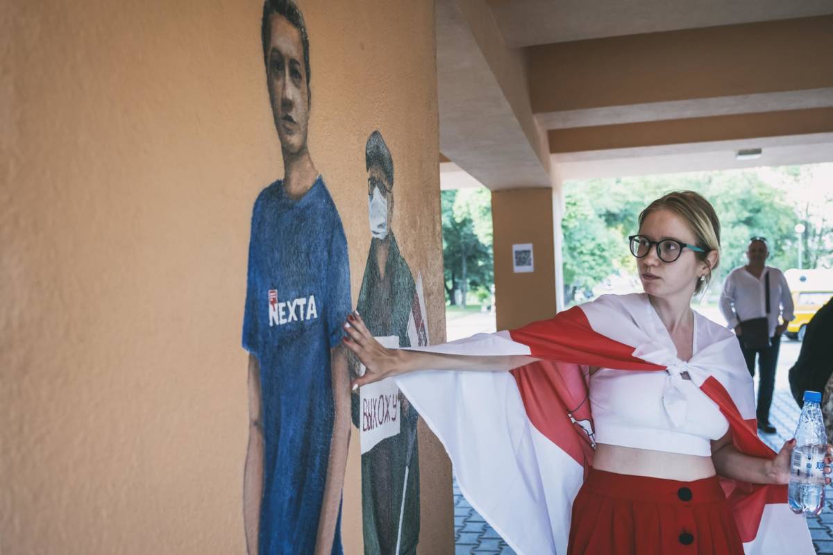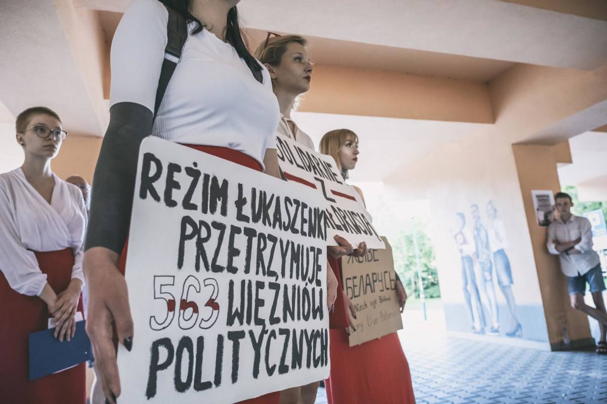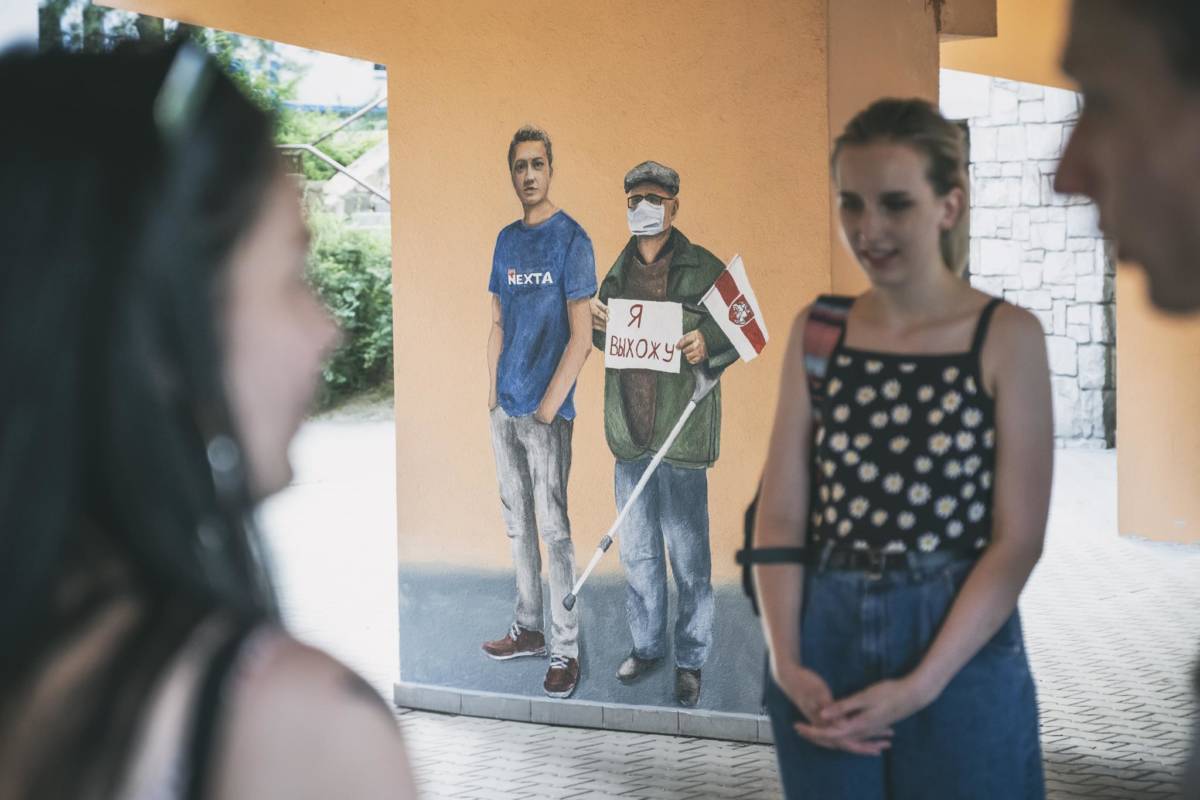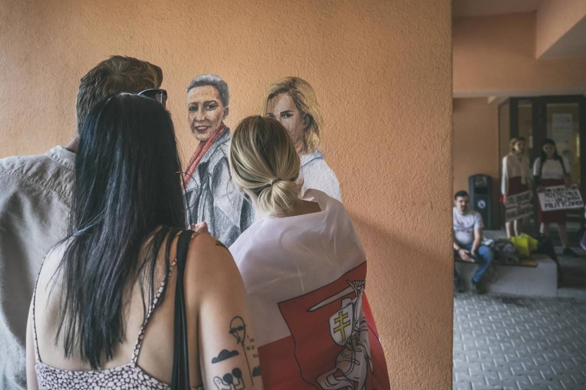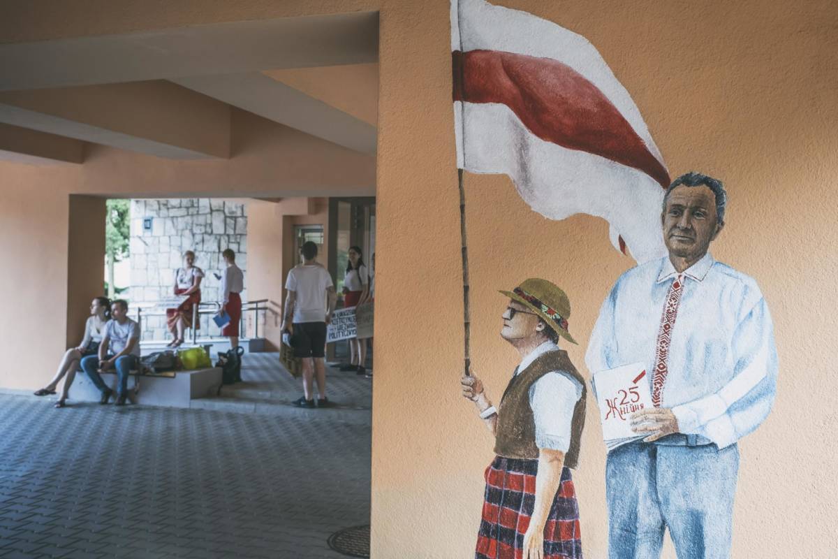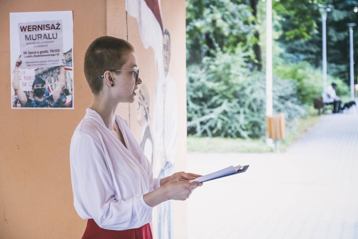 Dziesięć namalowanych postaci i dziesięć historii oddających sytuację na Białorusi. Za nami wernisaż muralu Aleny Hrybianchuk, studentki malarstwa na UMCS.